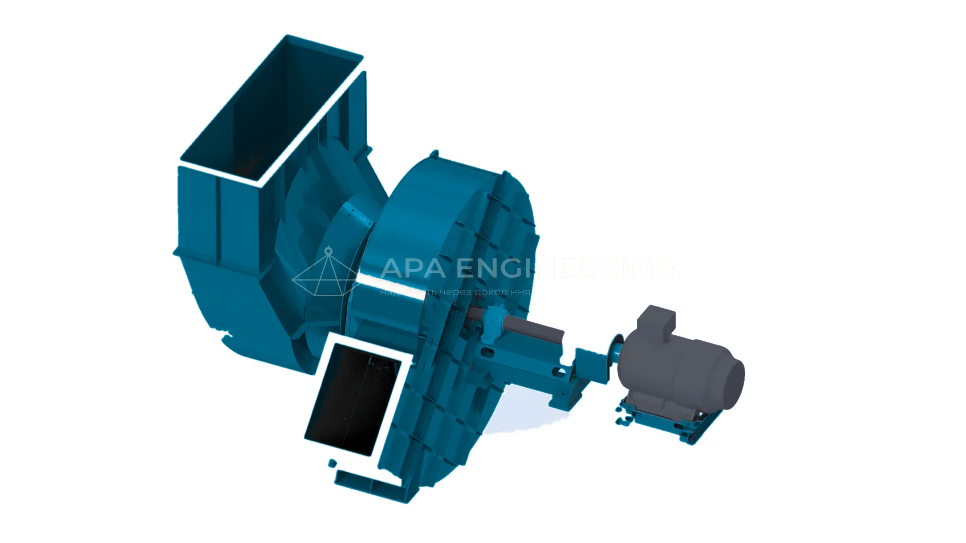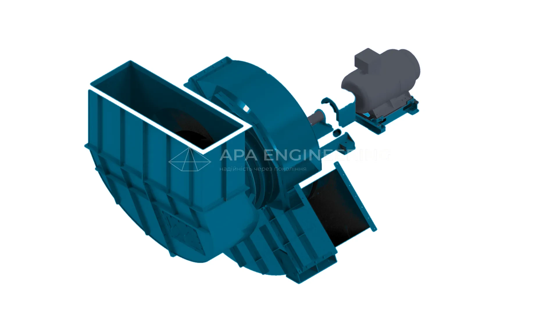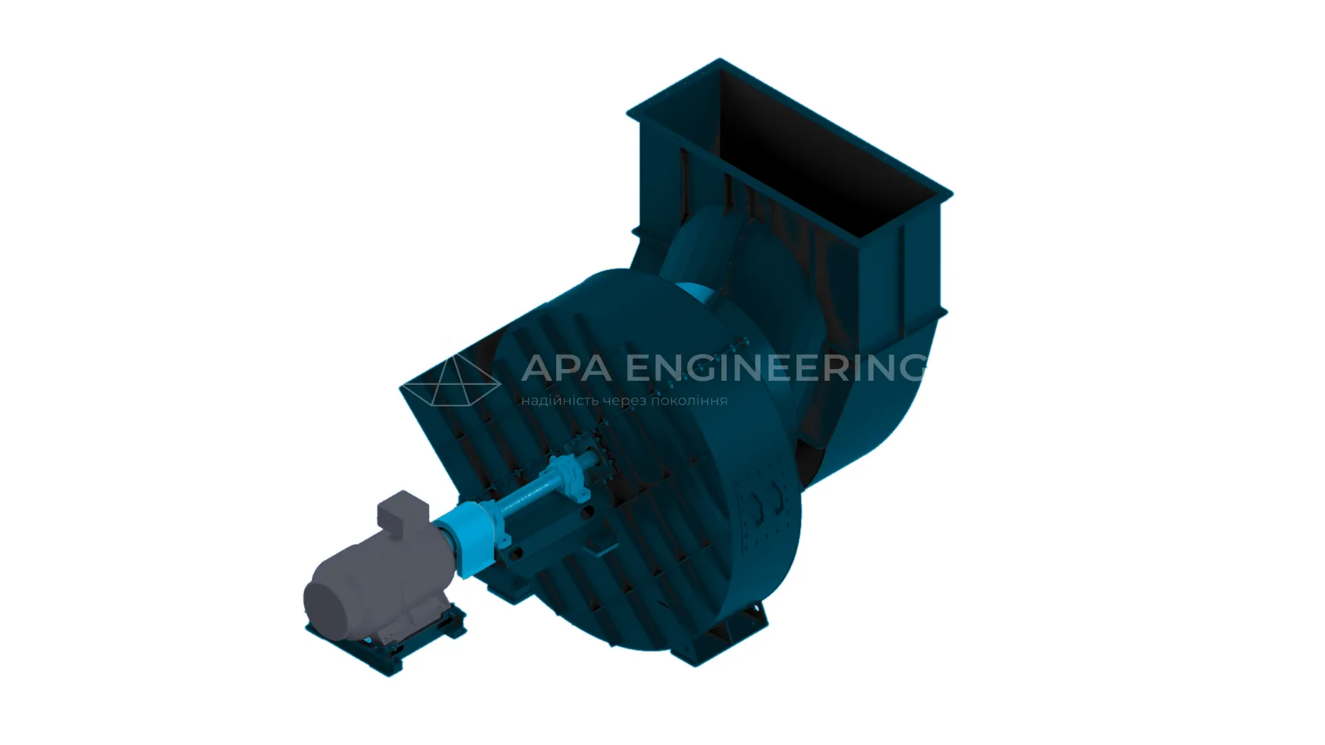 Встановлюється на станині. Загальнопромислові асинхронні електродвигуни з короткозамкненим ротором серії АІР входять в базову комплектацію вентилятора. Але в залежності від умов експлуатації може бути встановлений електромотор іншої серії.