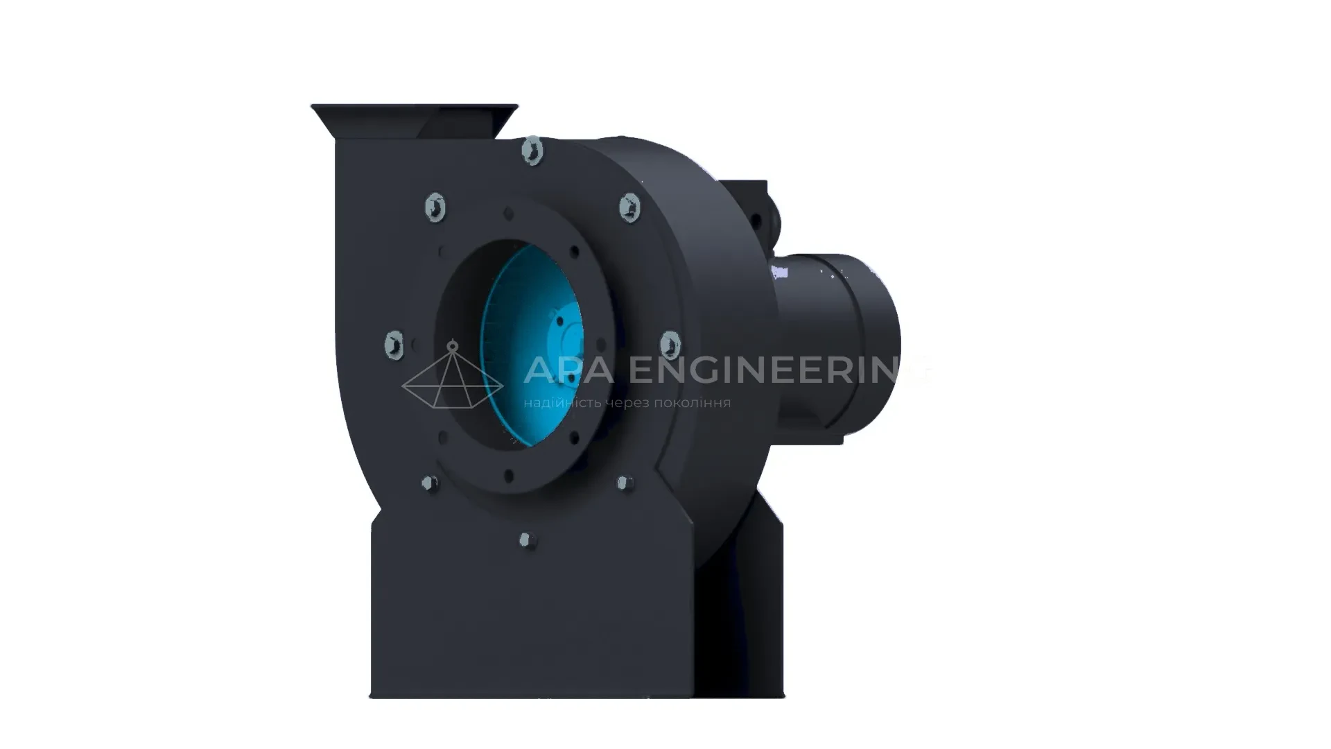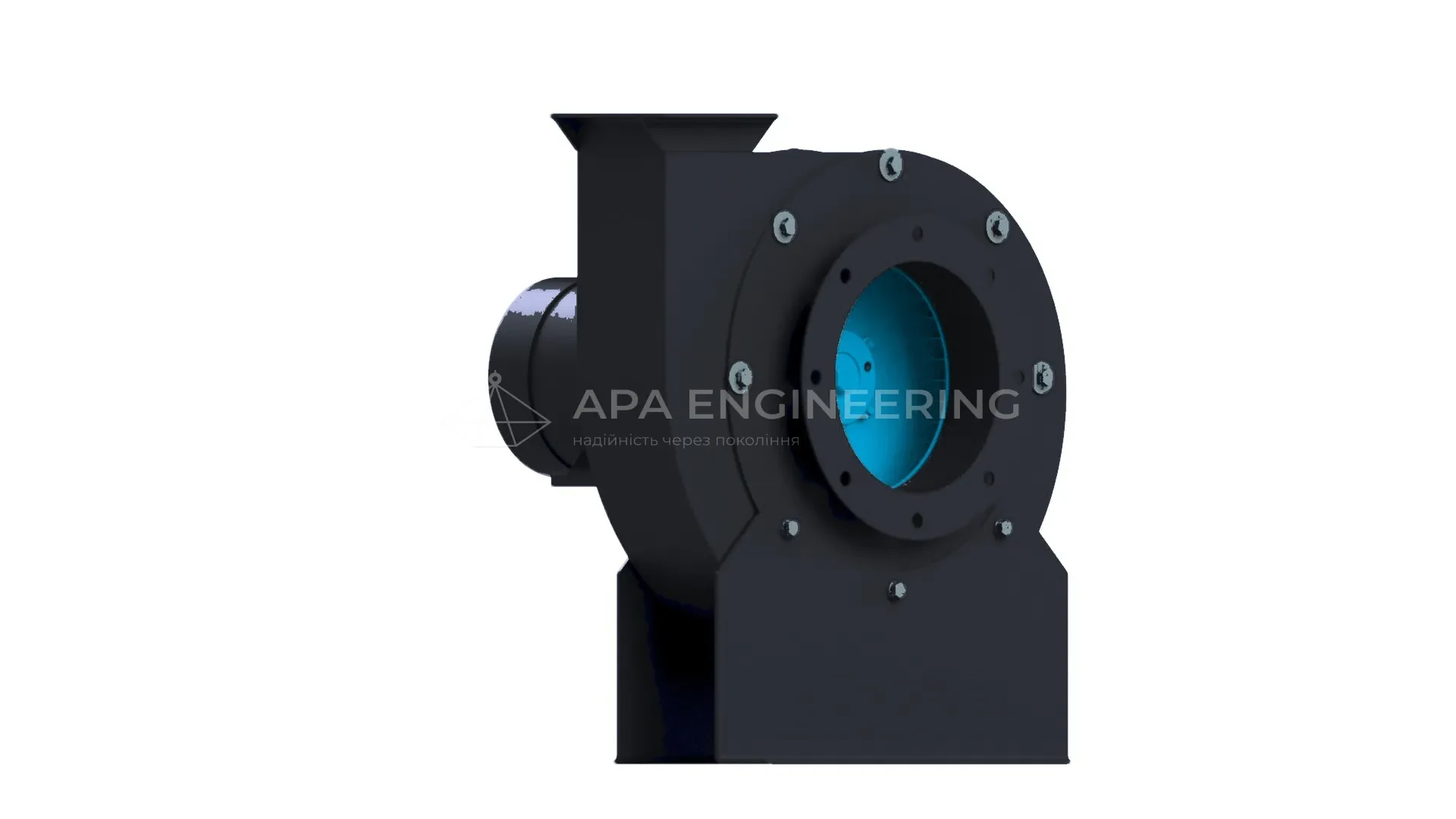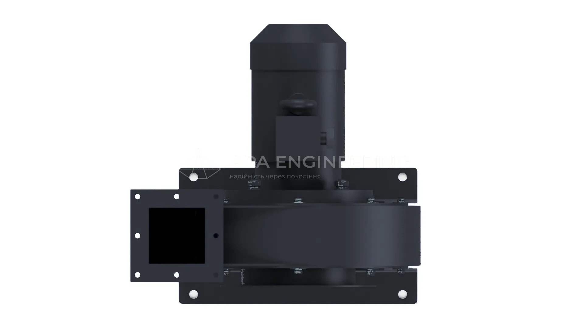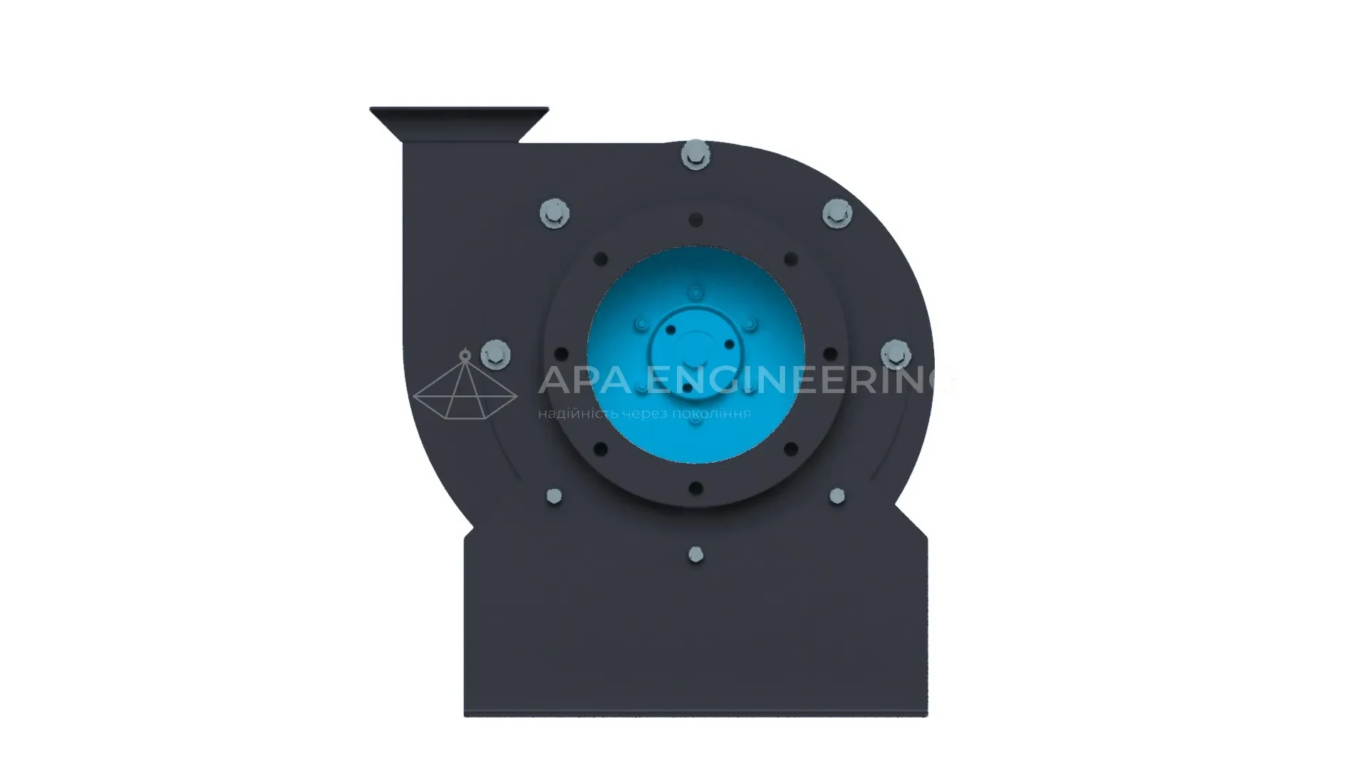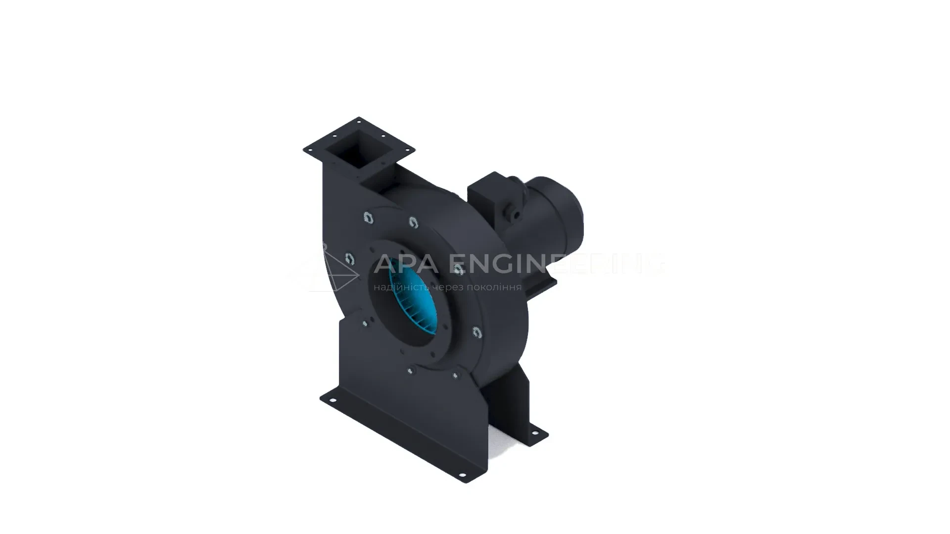 Станина металева, зварна. До неї кріпляться всі основні вузли відцентрового вентилятора. Для кріплення до монтажної поверхні в рамі передбачені отвори під віброізолятори.
