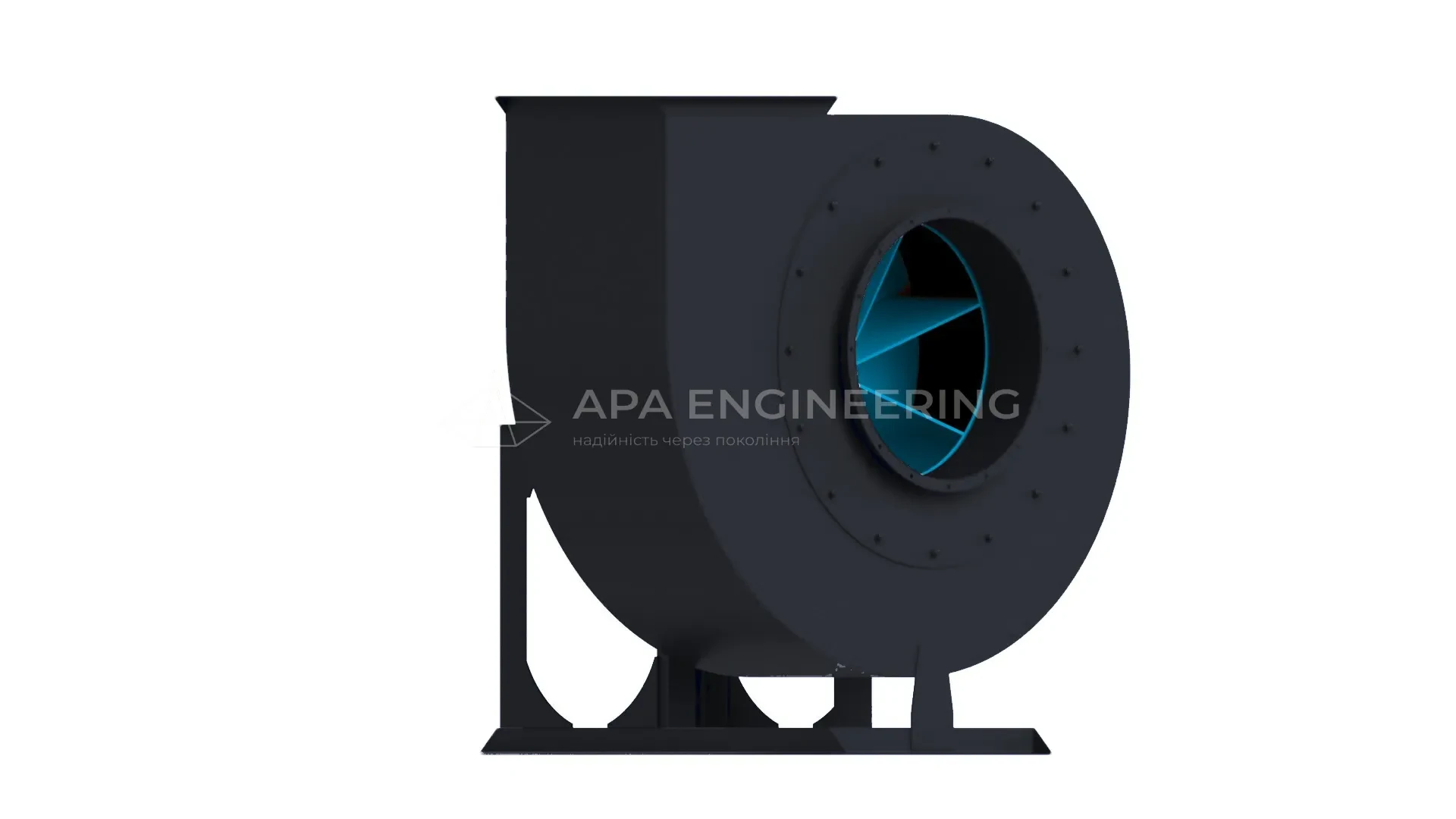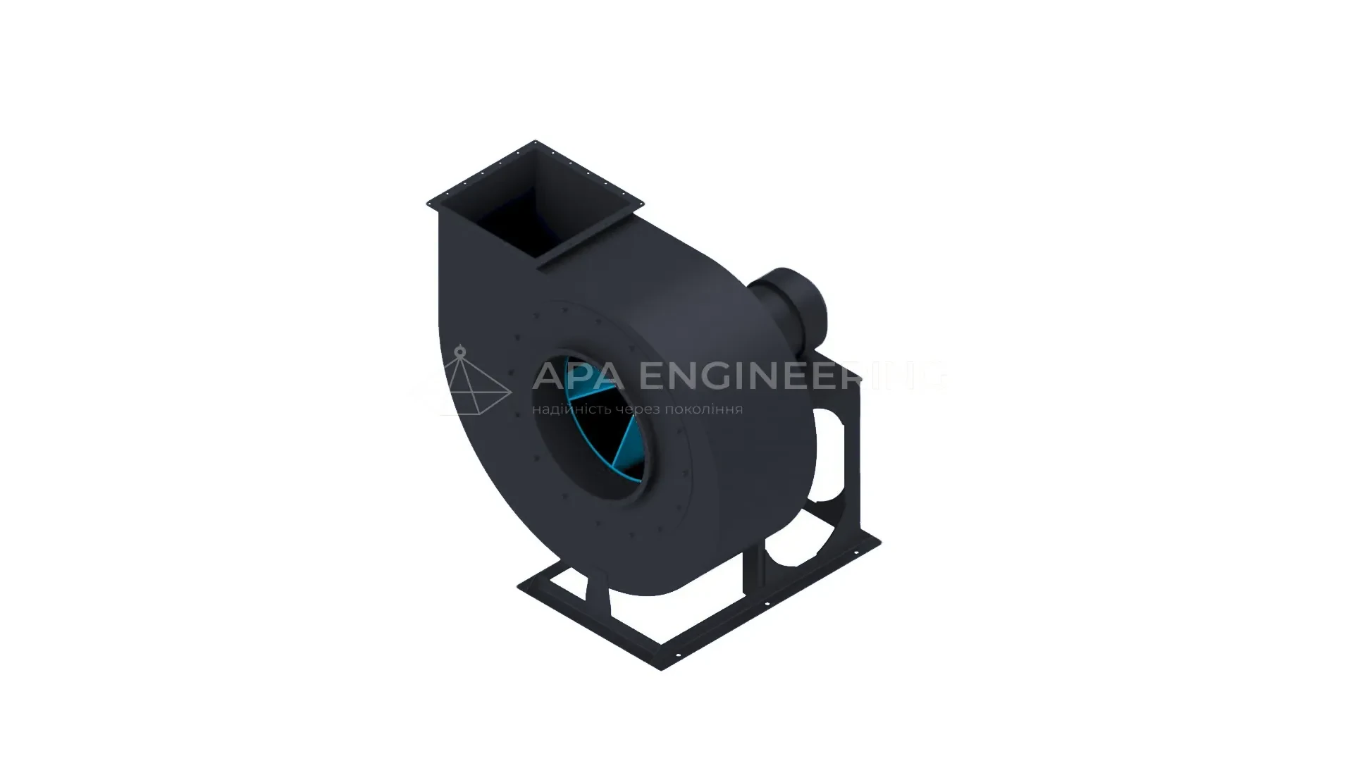 Станина металева, зварна. До неї кріпляться всі основні вузли центробіжного вентилятора. Для кріплення до монтажної поверхні в рамі передбачені отвори, які також можуть бути використані для установки вентилятора на віброізолятори.