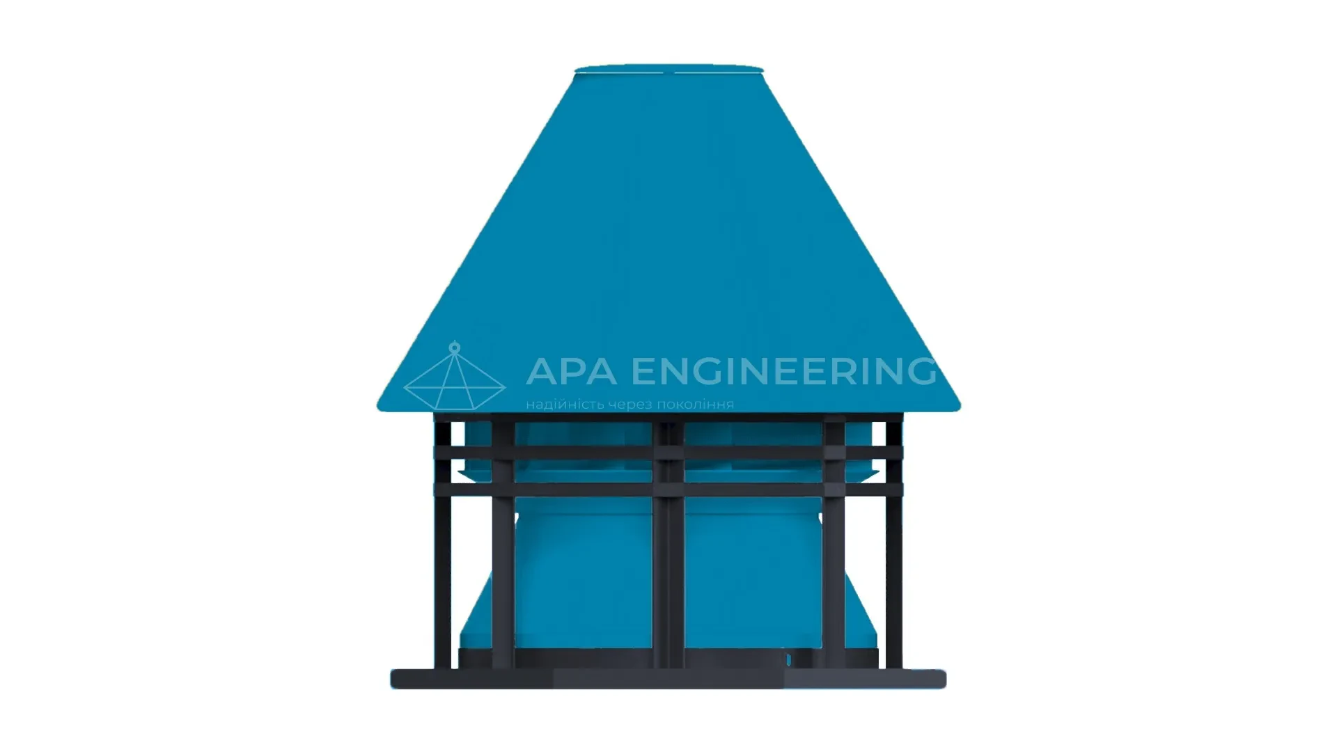 Виконаний із листового металу. Захищає електродвигун та інші робочі вузли вентилятора від атмосферних опадів.