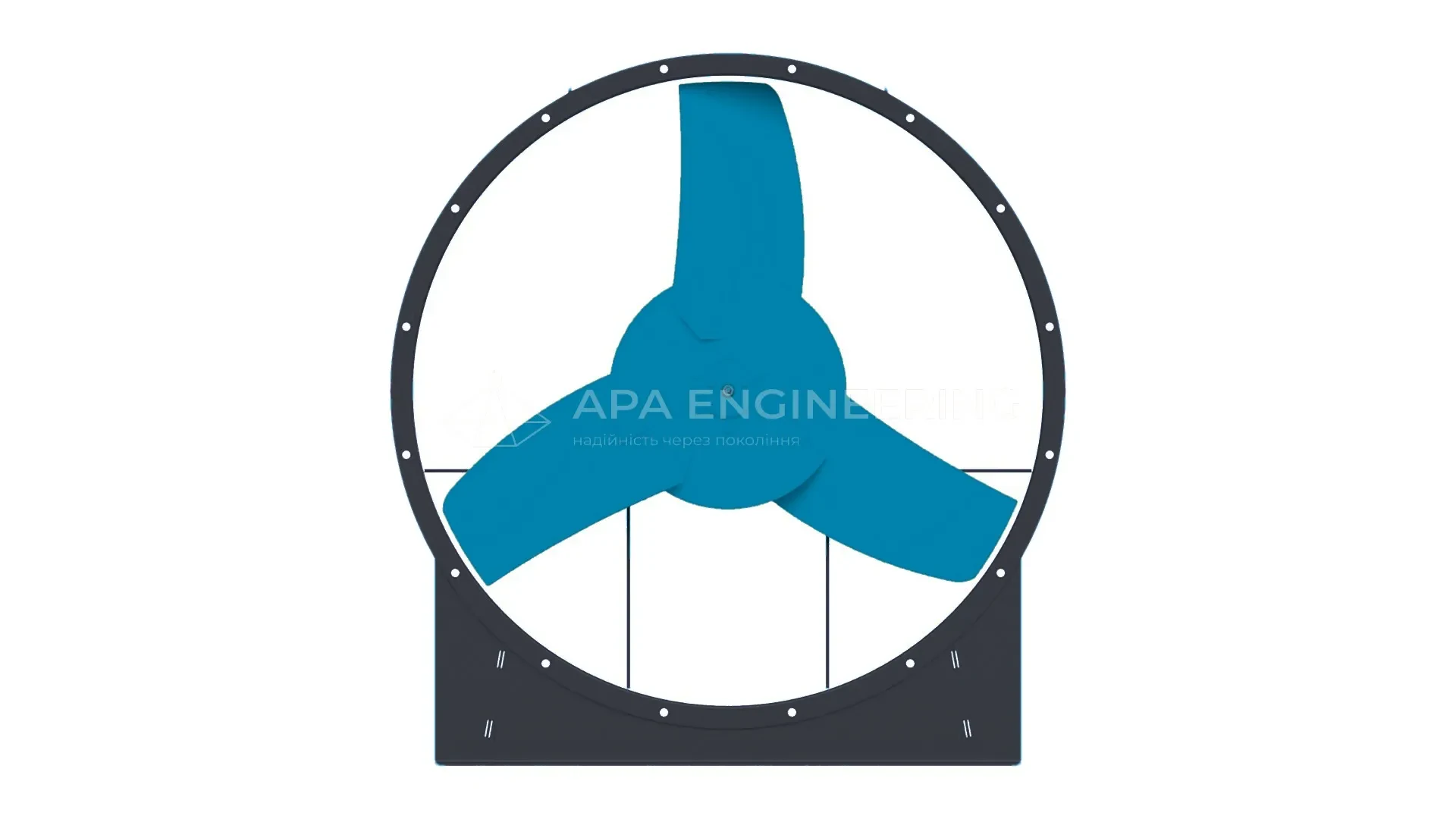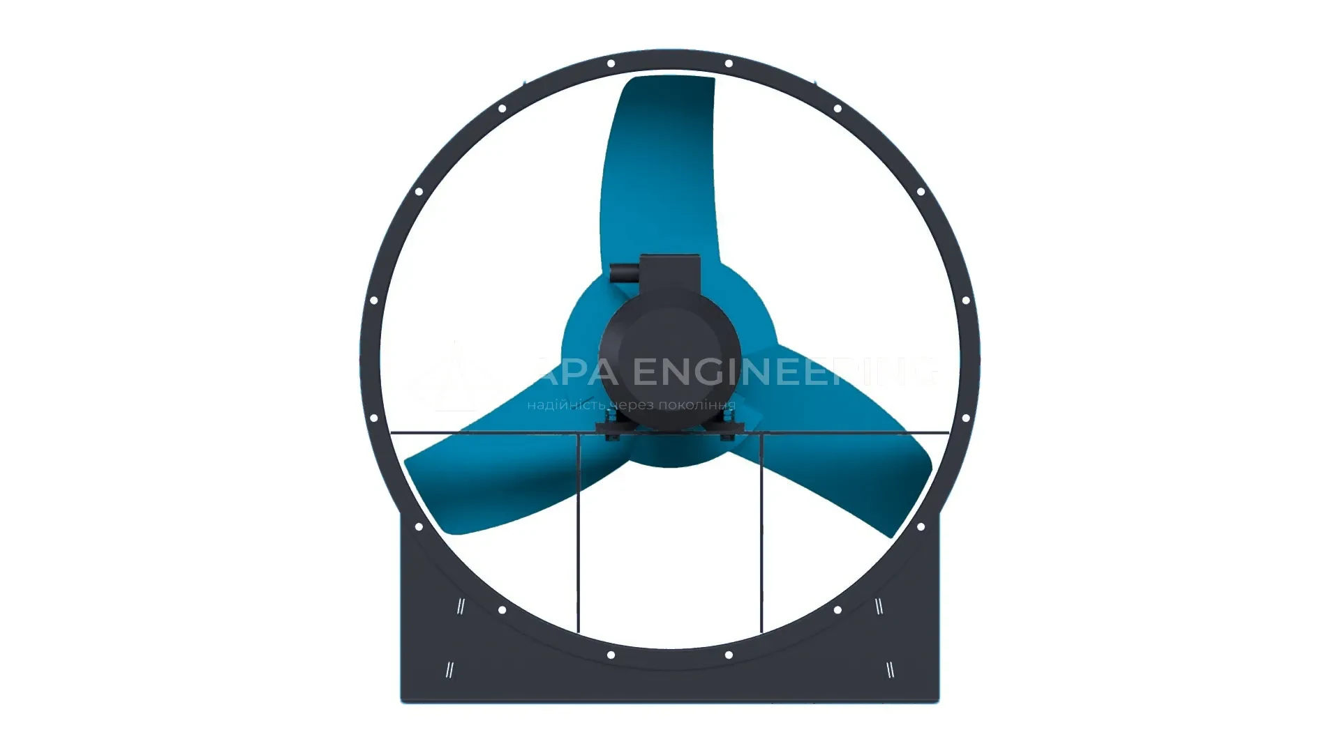 Крильчатка металева, зварна, правого або лівого обертання. Має 3 лопатки. Насаджується безпосередньо на вал електродвигуна. Динамічно збалансована. Діаметр крильчатки 800 мм. Фарбування порошкове.