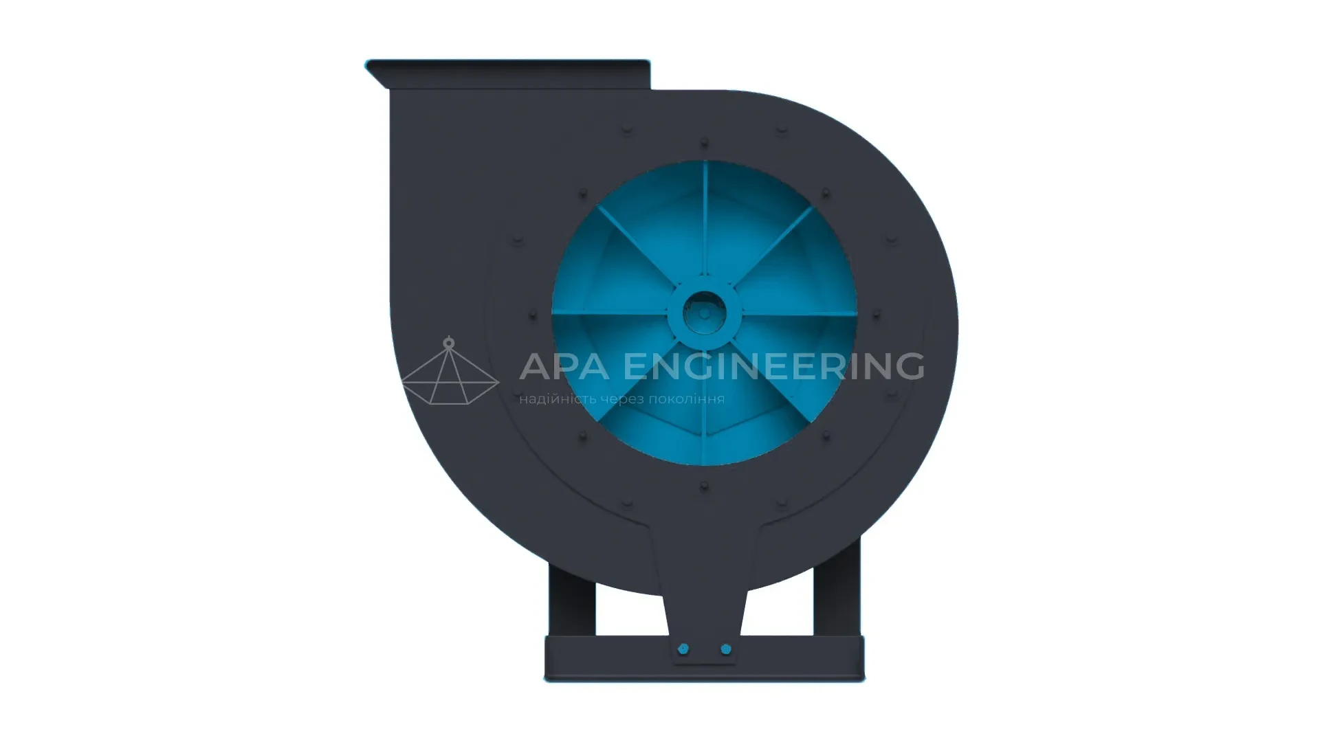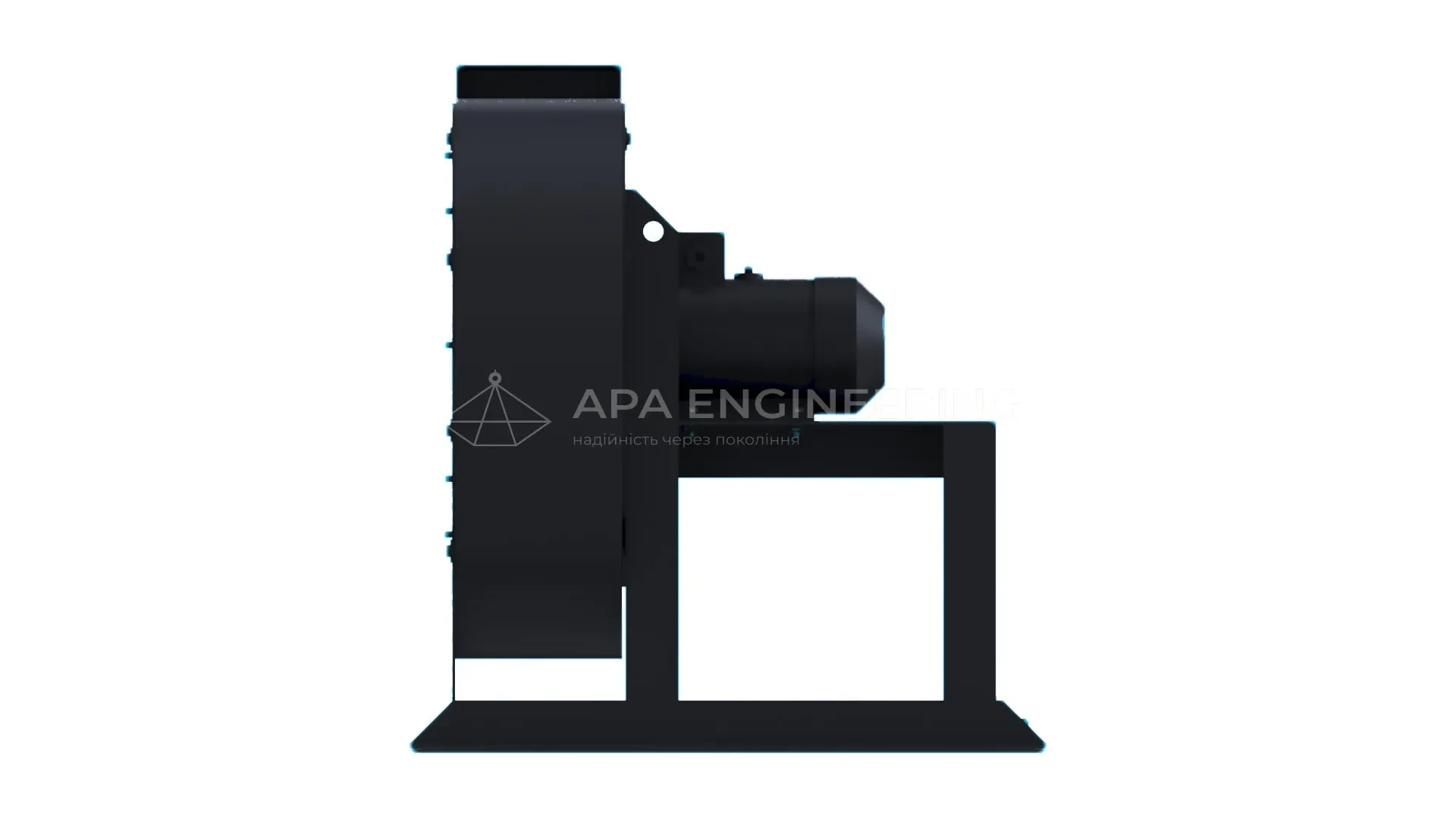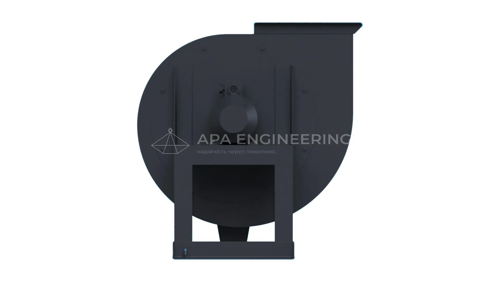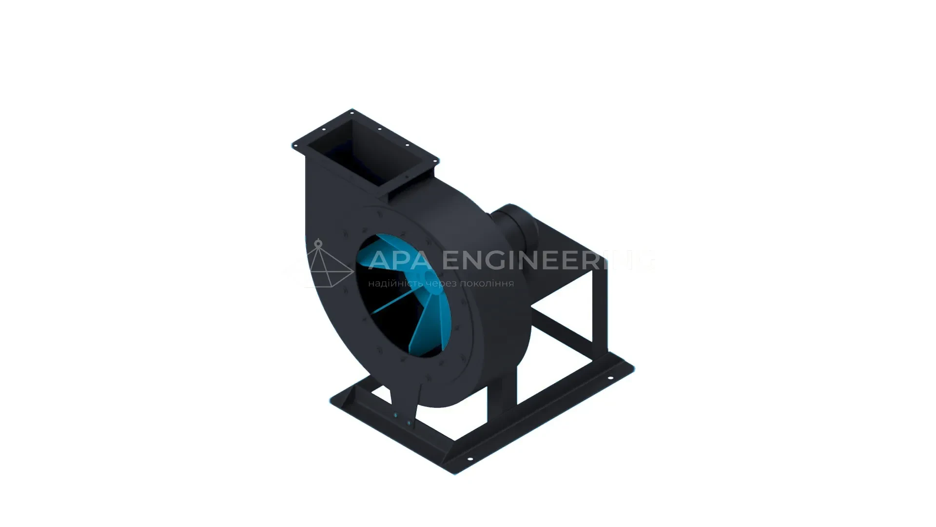Станина металева, зварна. До неї кріпляться всі основні вузли центробіжного вентилятора. Для кріплення до монтажної поверхні в рамі передбачені отвори. При необхідності вентилятор можна ставити на віброізолятори.