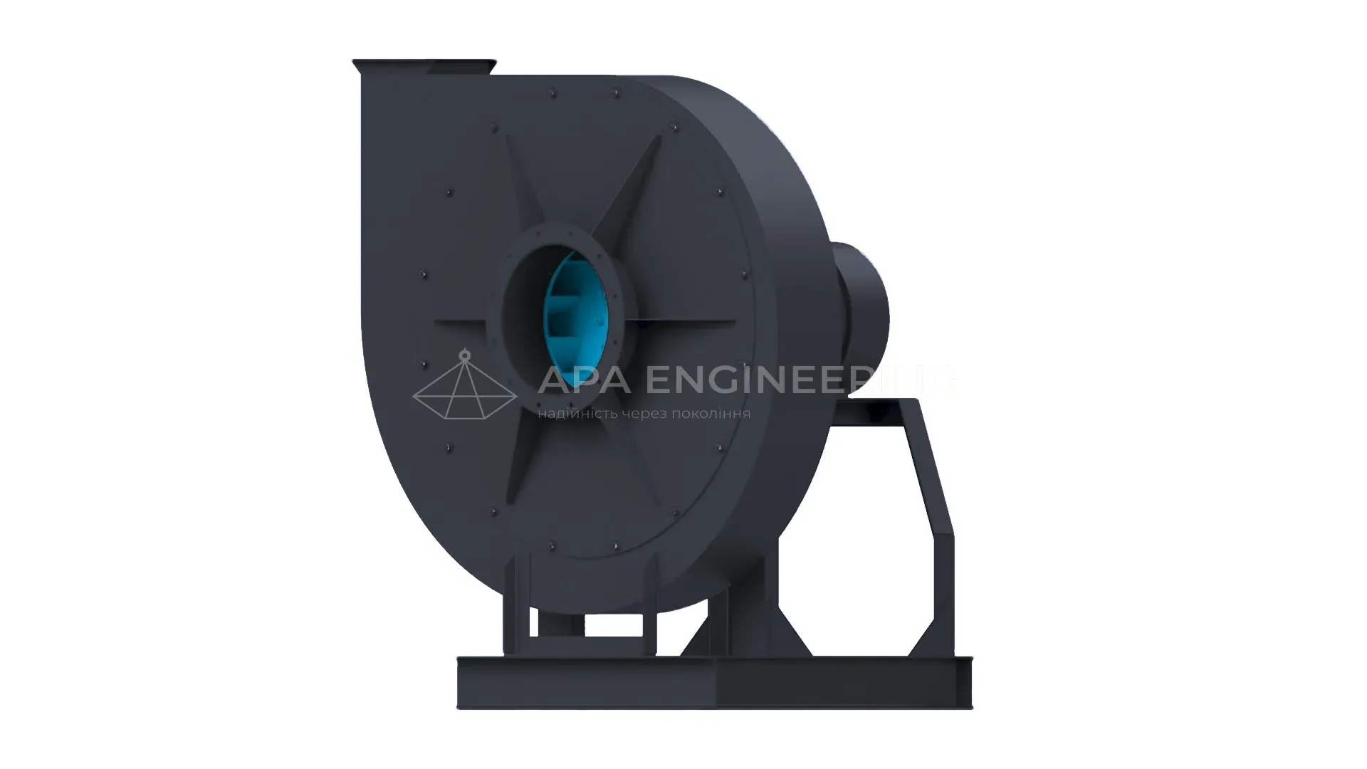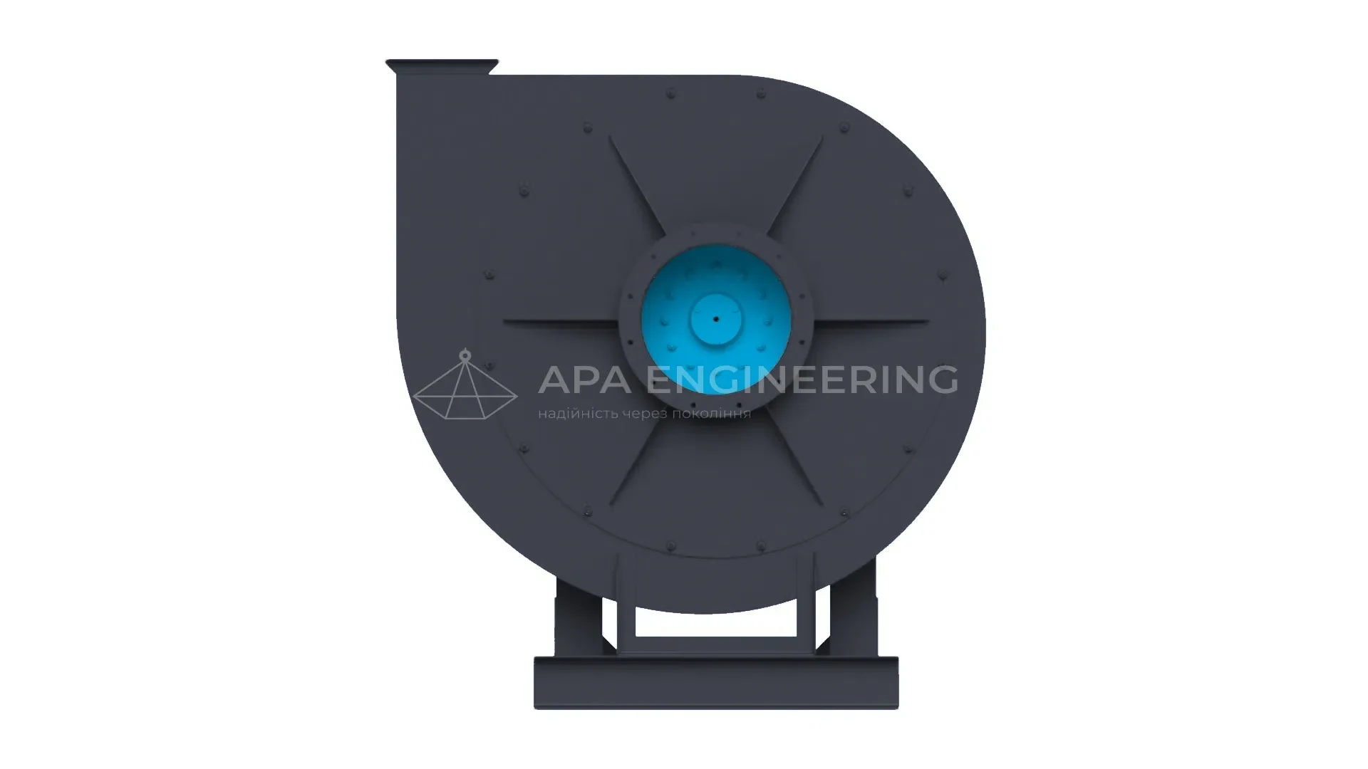 Станина металева, зварна. До неї кріпляться всі основні вузли відцентрового вентилятора. Для кріплення до монтажної поверхні в рамі передбачені отвори, які також можуть бути використані для установки вентилятора на віброізолятори.